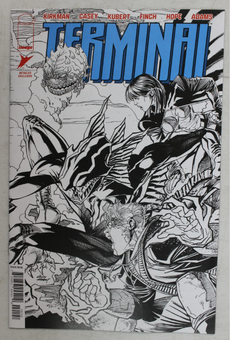 Comic book cover titled 'Terminal' with black and white illustration of two characters.